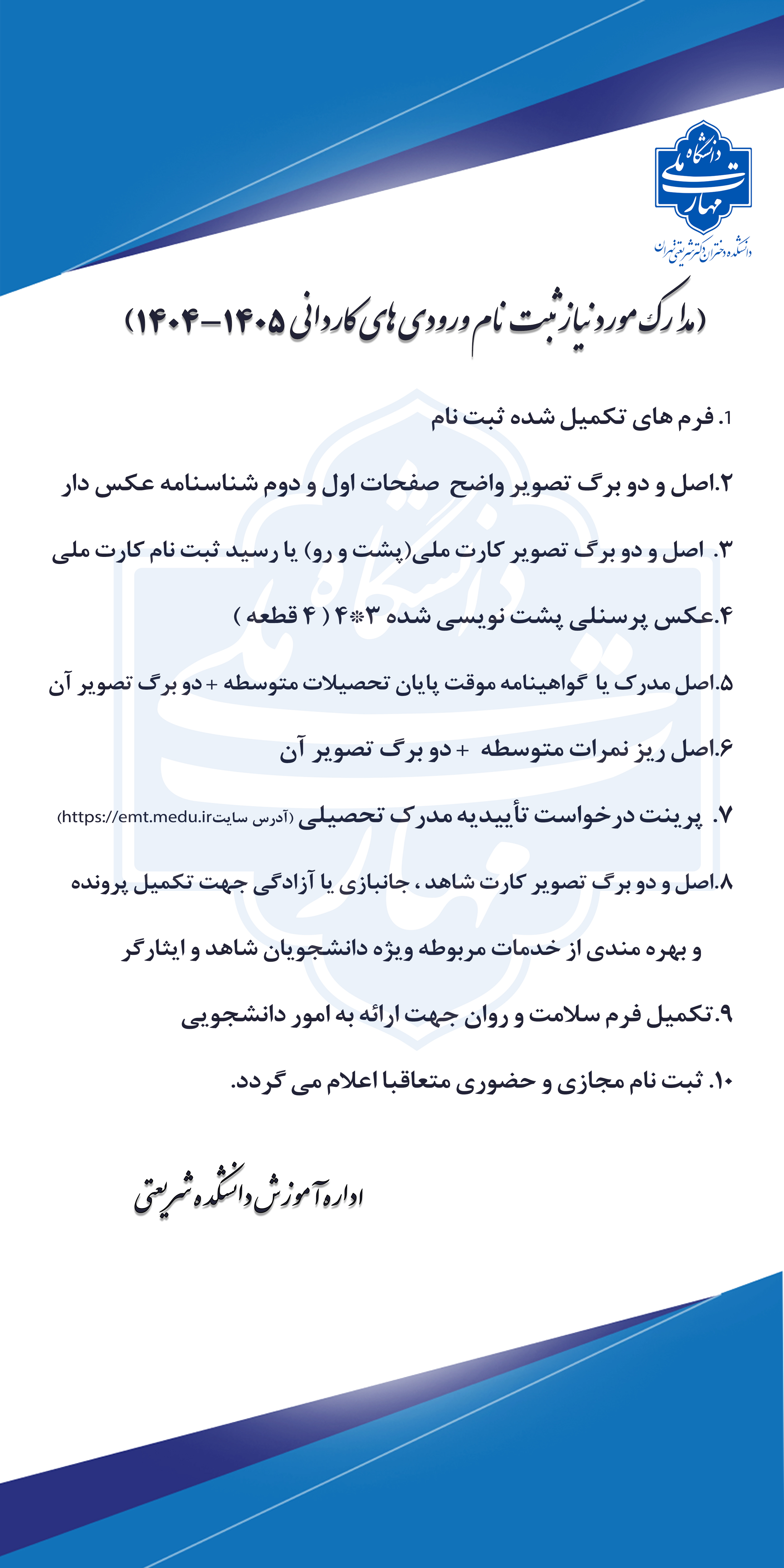 با عرض تبریک و خیر مقدم به پذیرفتهشدگان گرامی و خانوادههای محترم ایشان خواهشمند است،