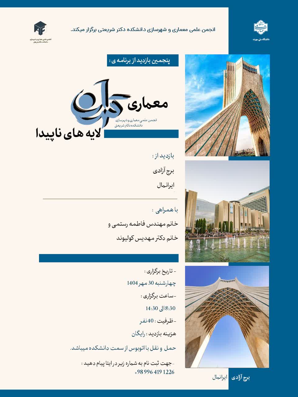 انجمن علمی معماری برگزار می کند: بازدید از برج آزادی و ایرانمال