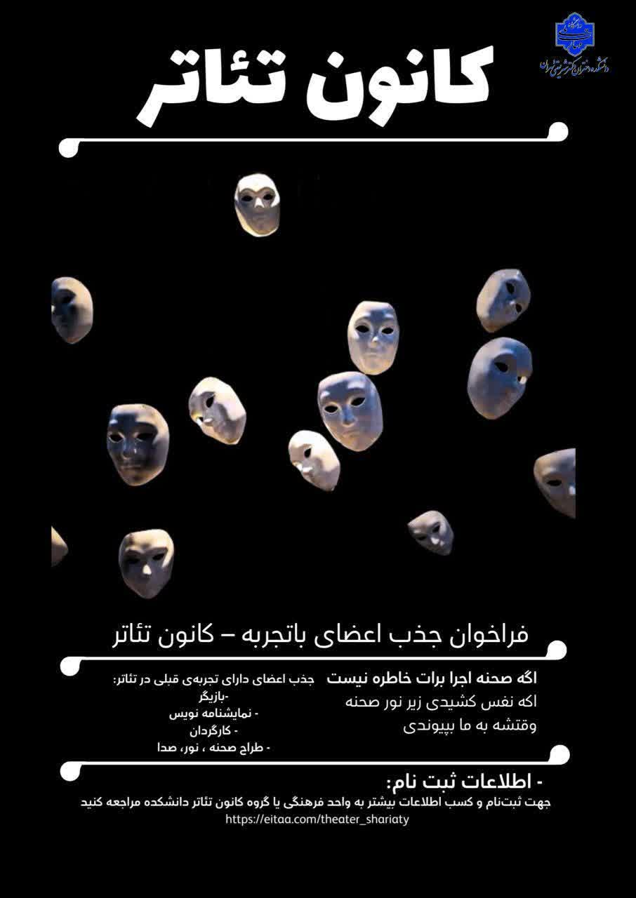فراخوان جذب کانون تئاتر(اداره فرهنگی ) دانشکده ملی مهارت شریعتی