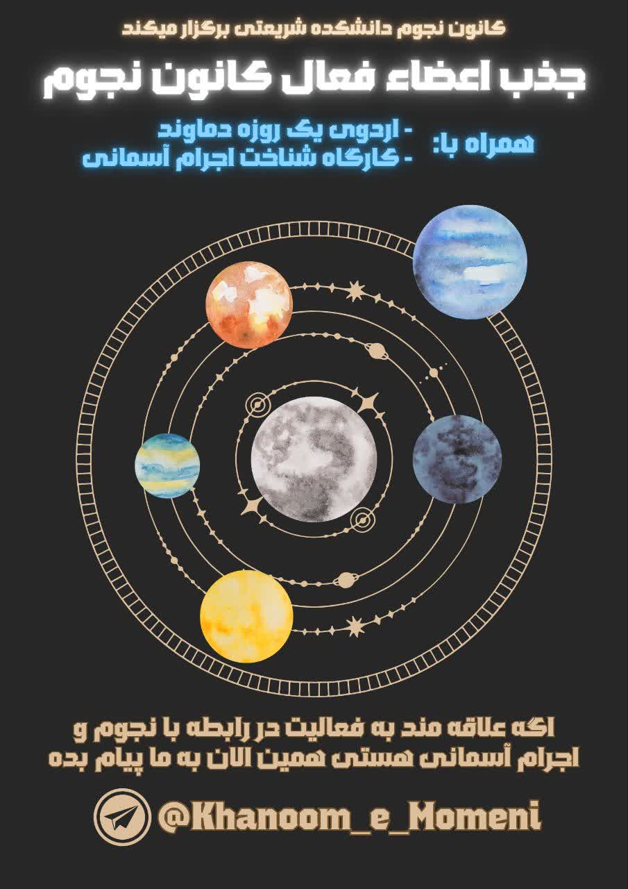 اگه علاقه مند به فعالیت در رابطه با نجوم و اجرام آسمانی هستی وقتشه به ما بپیوندی