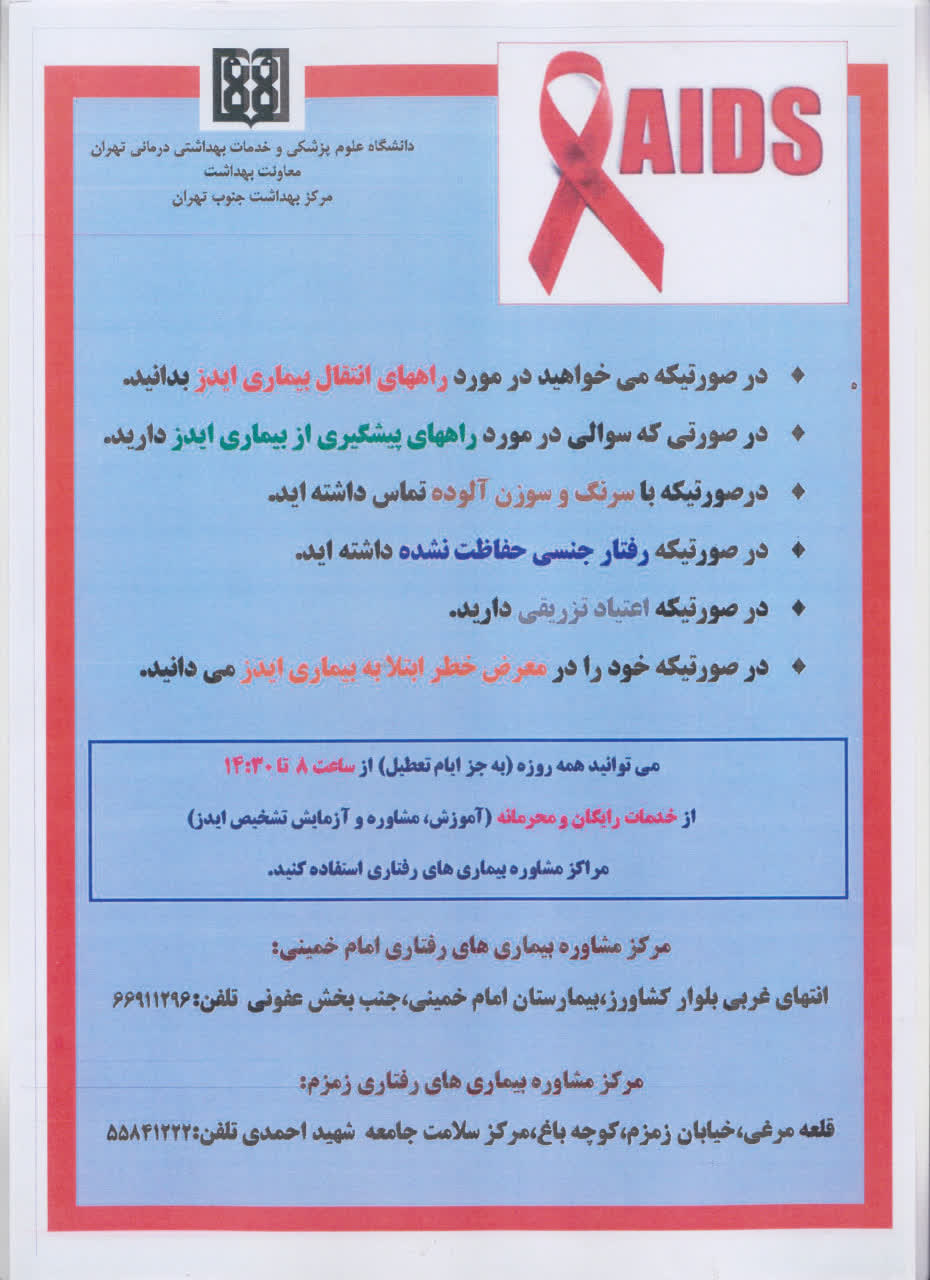 ایدز قابل پیشگیری است: بدانیم و ایمن بمانیم. ۲۹ مهر ۱۴۰۴ | ۱۰:۳۶ کد : ۹۴۳۴ اطلاعیه ها ارسال به دیگران نام شما ایمیل شما ایمیل دریافتکننده ارسال انصراف تعداد بازدید:۵۸
