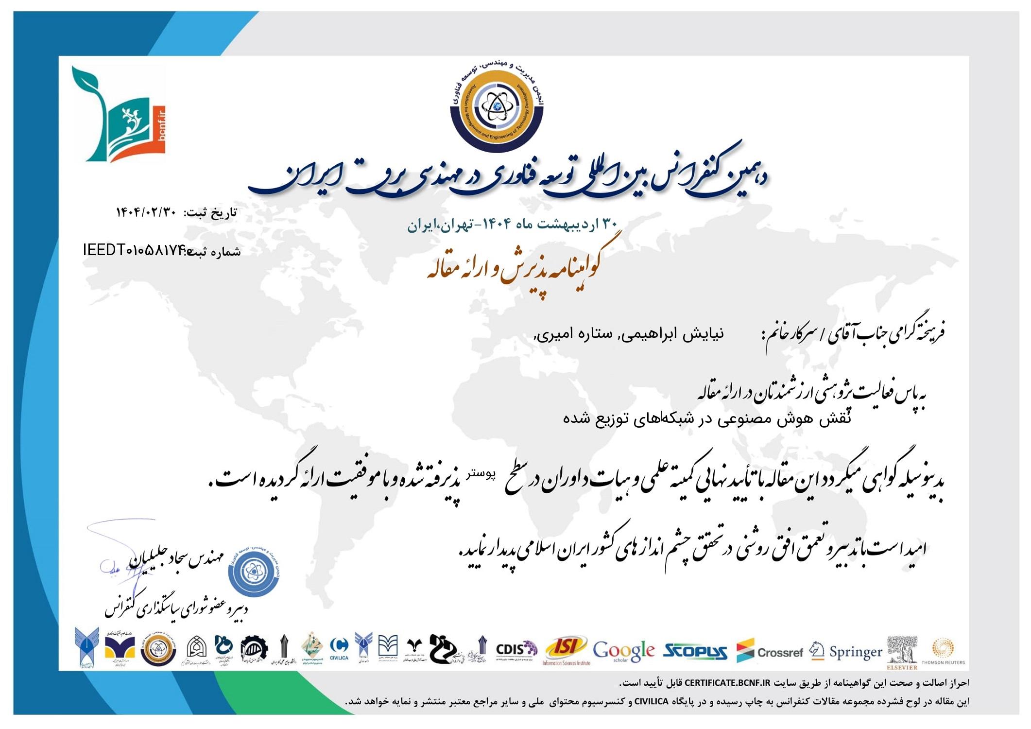 - مقاله نقش هوش مصنوعی در شبکه های توزیع شده در دهمین کنفرانس بین المللی توسعه فناوری در مهندسی برق ایران