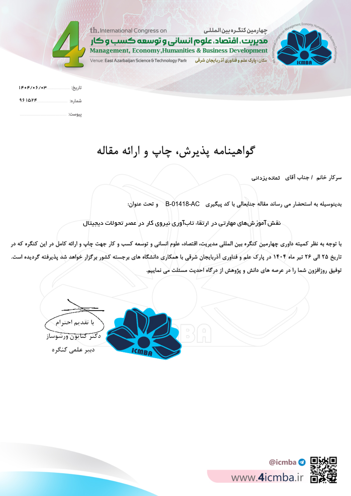 - نقش آموزشهای مهارتی در ارتقاء تابآوری نیروی کار در عصر تحولات دیجیتال