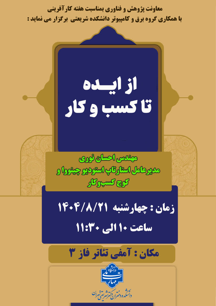 سمینار گروه کامپیوتر به مناسبت هفته کارآفرینی ۱۲ آبان ۱۴۰۴ | ۱۴:۲۳ کد : ۹۴۷۷ اطلاعیه ارسال به دیگران نام شما ایمیل شما ایمیل دریافتکننده ارسال انصراف تعداد بازدید:۵